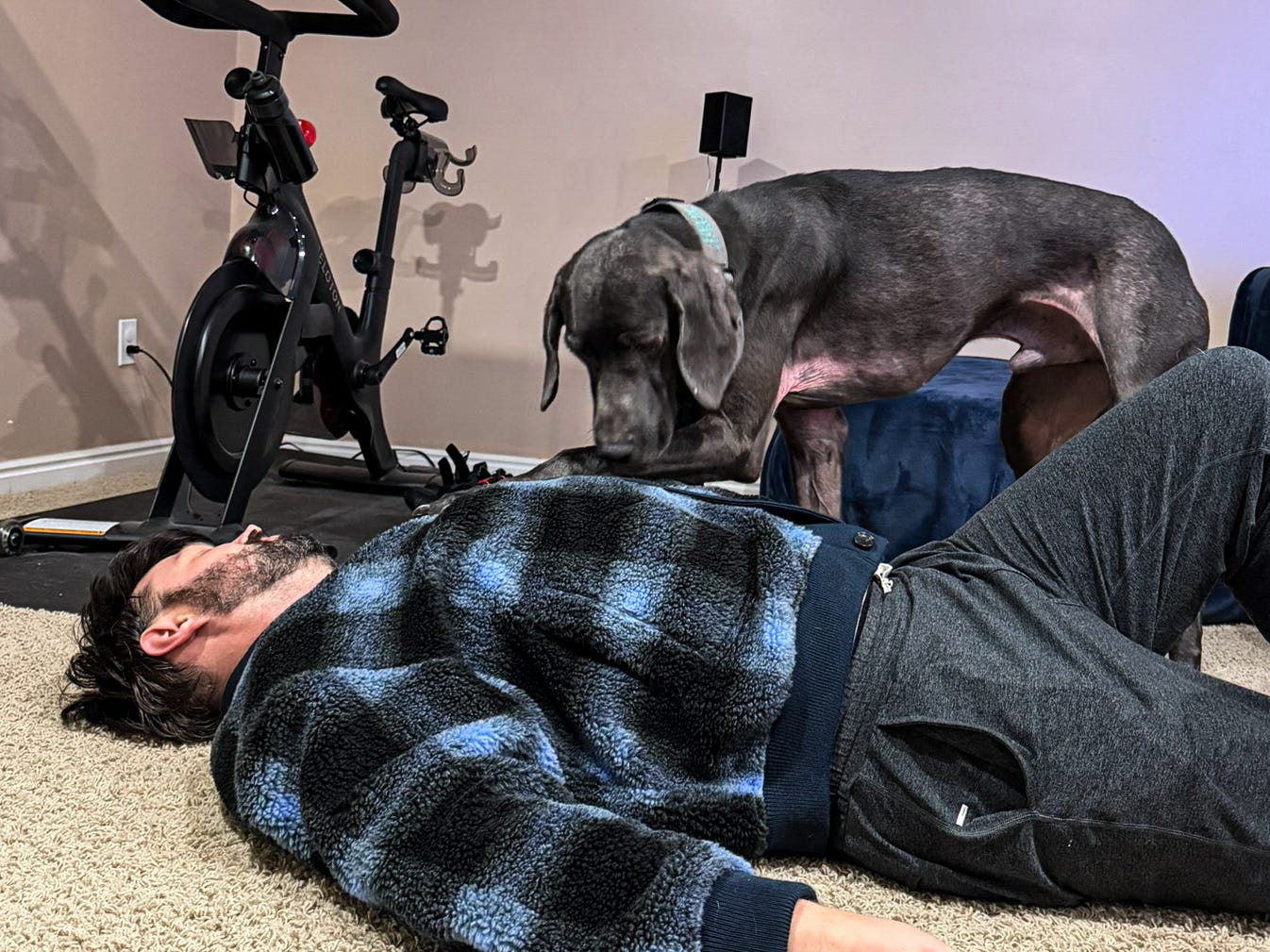 He just walked over and planted his massive paw directly on the center of my chest. Pinning me down. Standing over me with that singular canine clarity that says: